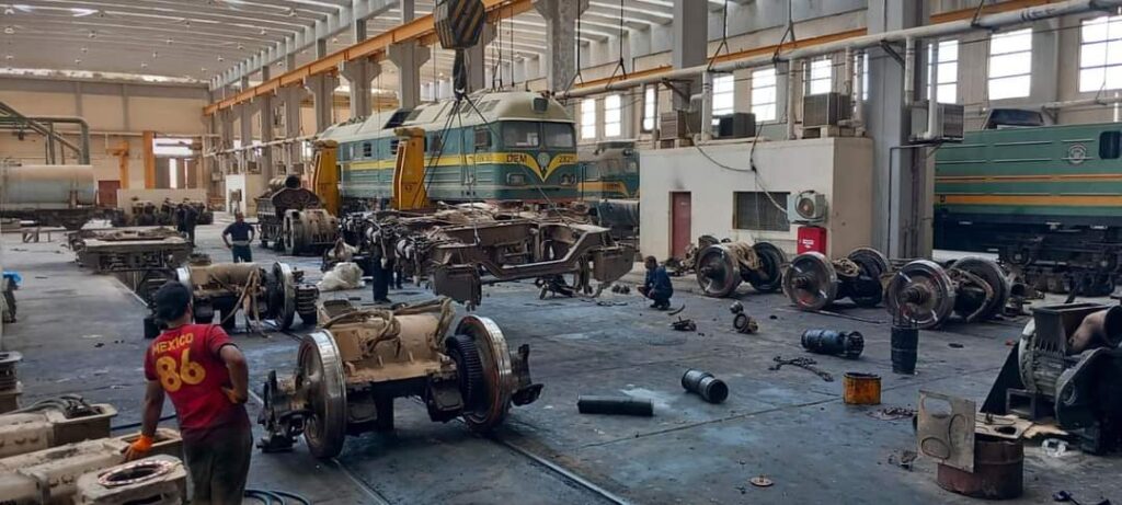 أنجزت الملاكات الهندسية والفنية والتشغيلية للشركة العامة لسكك حديد العراق في ورشة الديزل بمعامل السماوة تأهيل وتصليح القاطرتين المعطلتين الروسية ( DEM)2804 و2822 ).