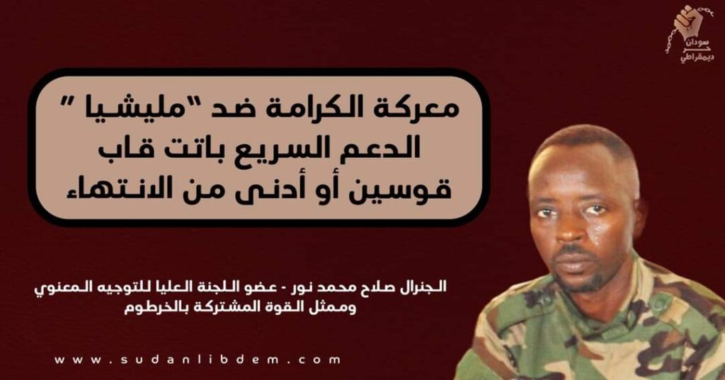 وخلال اللقاء، تحدث صلاح محمد نور عن المهام الحيوية التي تضطلع بها لجنة التوجيه المعنوي في تعبئة القوات والمجتمع لدعم معركة الكرامة،