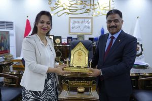 حيث أثنى السيد معالي رئيس الهيأة بجهود هيئة الأعتماد العراقية على التعاون المثمر من أجل الحصول على دقة أنتاج عالي للمنتجات العسكرية التي تُنتج في مصانع الهيأة كما قامت مدير عام هيئة الأعتماد العراقي بتسليم درع الجودة إلى السيد معالي رئيس الهيأة وبدوره قام سيادته بتسلم درع الهيأة إلى مدير عام هيئة الأعتماد العراقية مشيداً بجهودهم المبذولة من أجل المساهمة في بناء مستقبل صناعتنا الحربية لتكون السند الاول لقواتنا الامنية ورفدهم بما يحتاجونه من