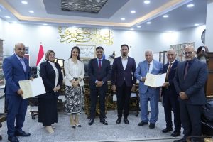 السيد رئيس هيأة التصنيع الحربي المهندس مصطفى عاتي حسن يستقبل وفد من وزارة التخطيط/هيئة الأعتماد العراقية المتمثله بمدير عام الهيئة والوفد المرافق له لغرض تسلم شهادات الأعتماد العراقية