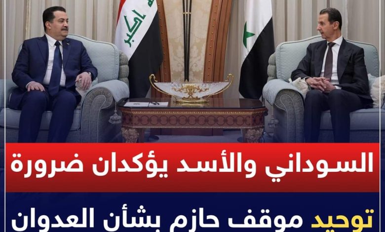 السوداني والأسد يؤكدان ضرورة توحيد موقف حازم بشأن العدوان في المنطقة