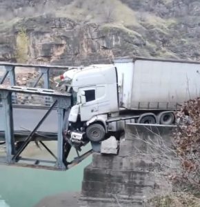 أدى حادث اصطدام شاحنة بجسر گلي علي بك الحديدي عند ملتقى نهري بالكيان ورواندز الى إصابة سائق الشاحنة ، وإغلاق الطريق امام حركة المرور.