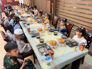 🔹 وشهدت مأدبة الإفطار قراءة سورة الفاتحة ترحماً على أرواح ذوي الطلبة الأيتام، فضلاً عن توزيع الهدايا للطلبة، وإقامة فعاليات إنشادية وترفيهية لإدخال البهجة والسرور على محيا الطلبة الأيتام.