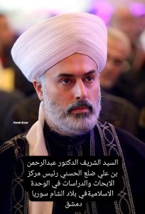 رئيس مركز الأبحاث والدراسات الوحدة الإسلامية في بلاد الشام والباحث في الأديان السماوية والجماعات الإسلامية الجمهورية العربية السورية – دمشق والآن الإقامة الجمهوريه العراقيه في بلد الإسلام والمسلمين وبلد العلم والعلماء في كربلاء المقدسة في جوار جدي الامام الحسين عليه السلام