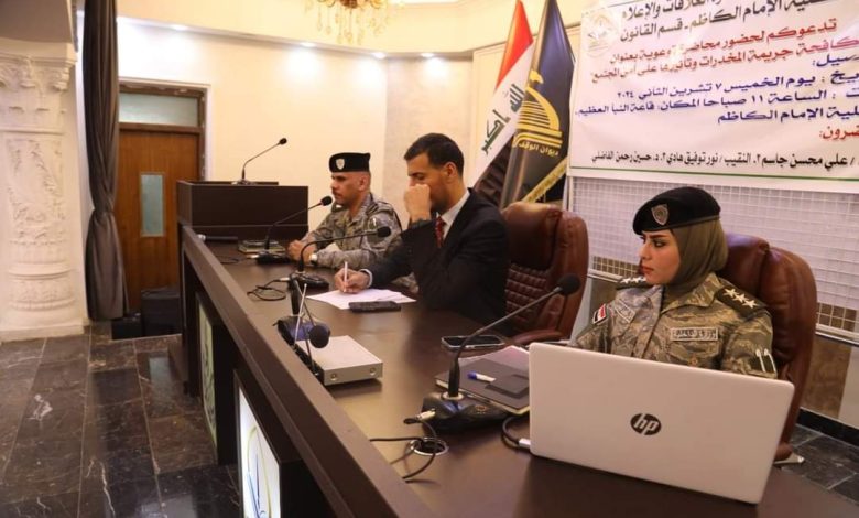 قسم الناطق الرسمي لوزارة الداخلية يلقي محاضرة توعوية في جامعة الإمام الكاظم (عليه السلام ) عن مكافحة المخدرات