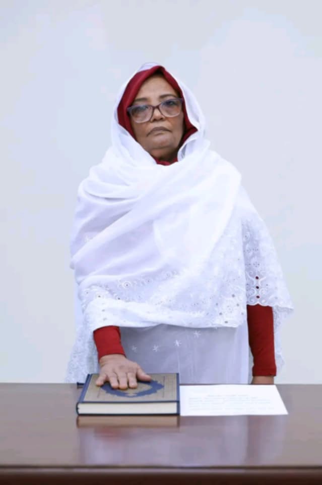 وقالت “سأظل خادمة لهذا الوطن أضع العدالة نصب أعيني وأجعل مصلحة السودان وأبنائه وبناته هي البوصلة التي توجه خطواتنا في إرساء العدل “.
