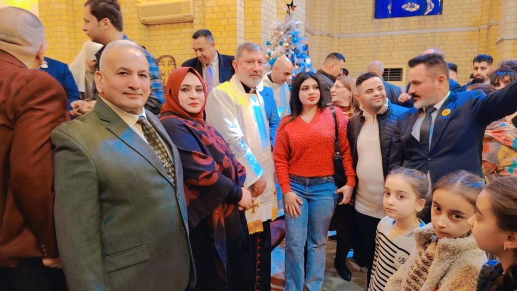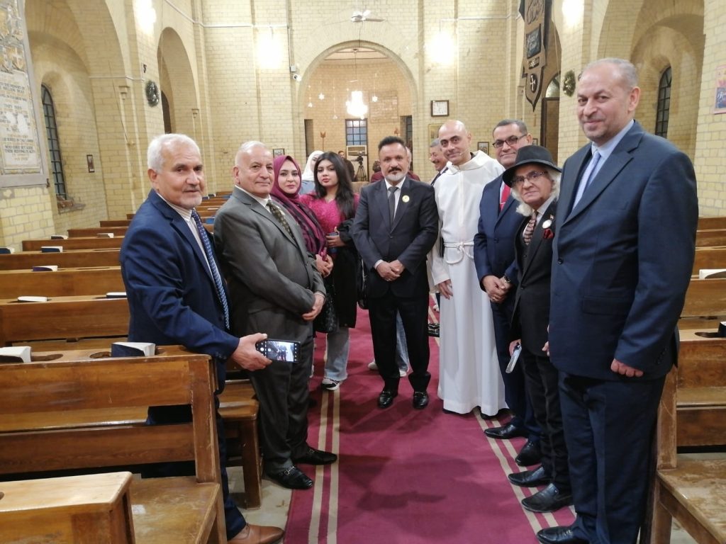 منظمة رسل السلام للتعايش المجتمعي للتضامن مع اخوتنا وشركائنا بالوطن لاخوتنا المسيحين بالأمن والأمان والتعايش المجتمعي بين جميع العراقيين وبعد إنتهاء الصلاة شكر الاب فائز جرجيس جميع الحاضرين والمشاركين بهذة المناسبة وحضورهم ودعا الله أن يعم السلام والمحبه بين الجميع ومن الله التوفيق والسداد والنجاح الدائم للجميع.