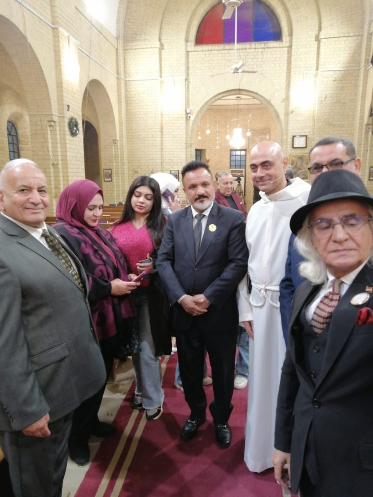 القداس الإلهي الذي أقامه الكنيسة الانكليكانية على كنيسة سانت جورج يوم الاحد الموافق ٢٠٢٥/١٢/٢٥ بمناسبة عيد المسيح المجيد وتقديم التهاني والتبريكات لجميع اخوتنا المسيحين تأتي هذه المشاركة مع اخوتنا المسيحيين ويُمثل هذه الزياره تلاحم الشعب العراقي بجميع الاديان والاطياف بالمحبة والتسامح الوئام