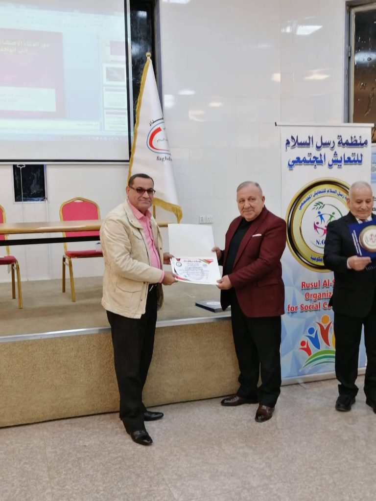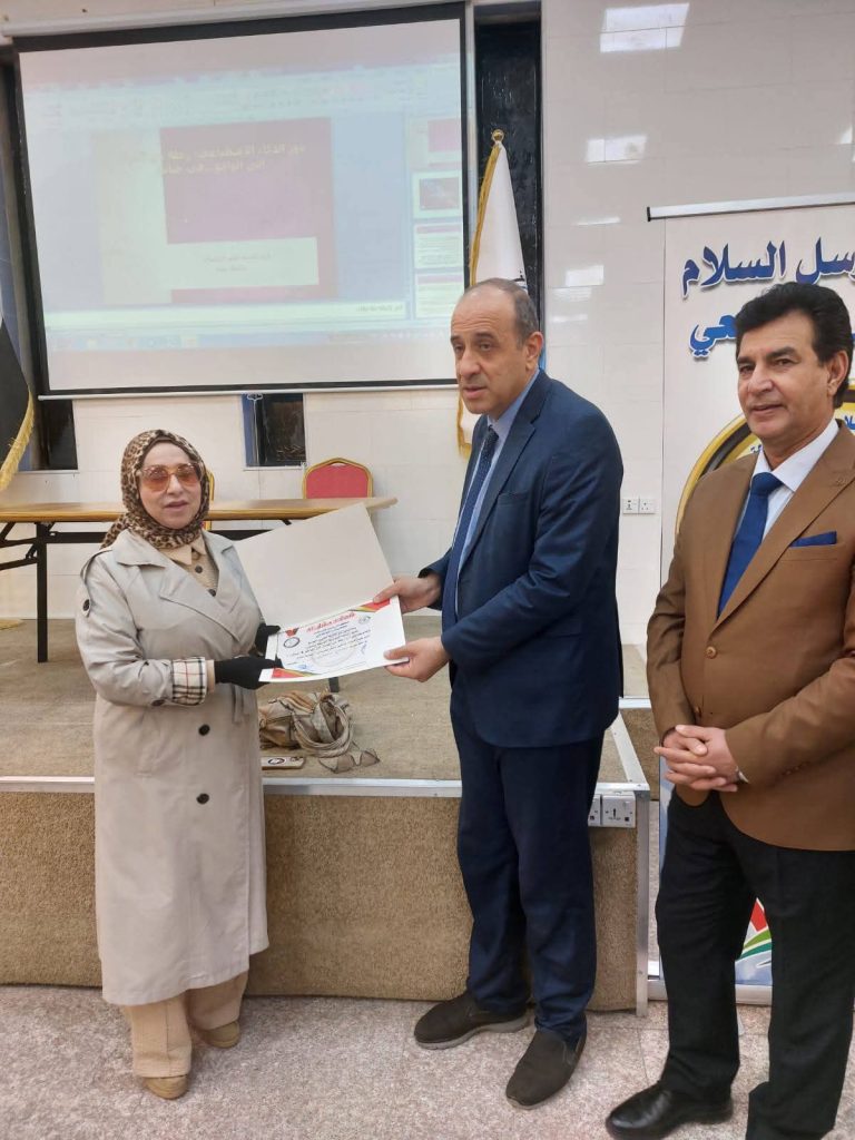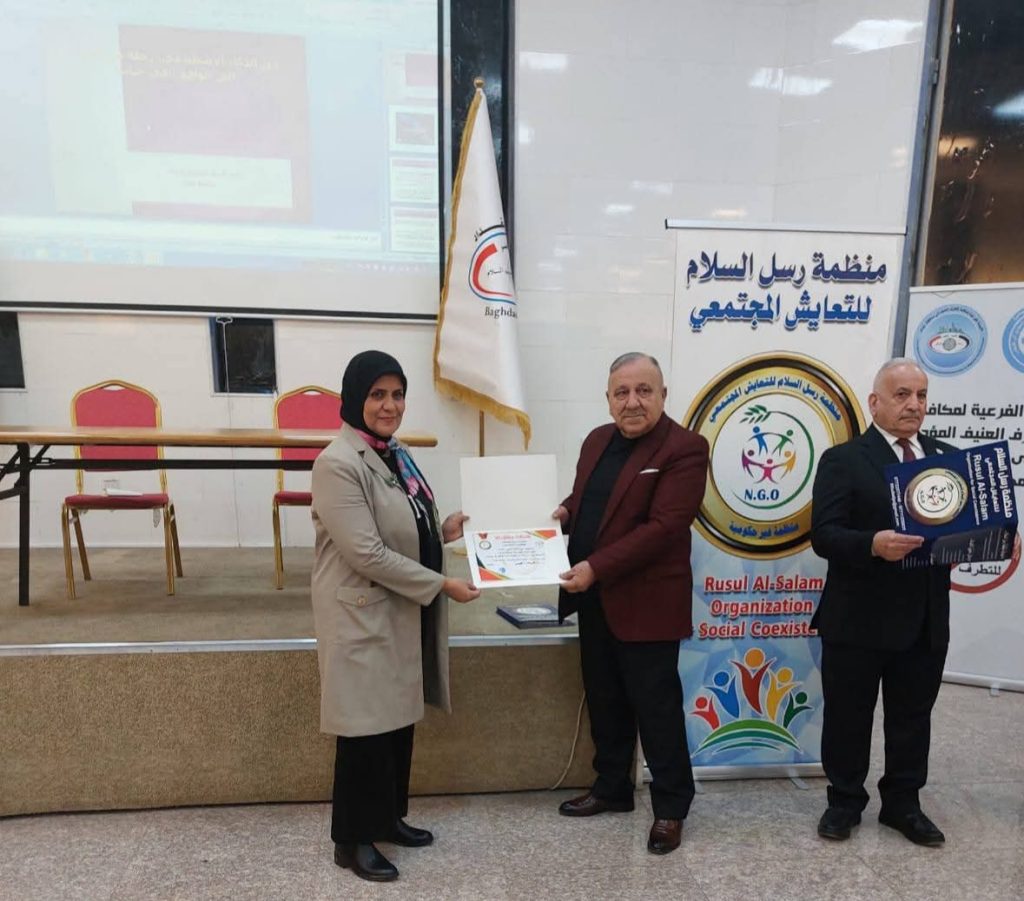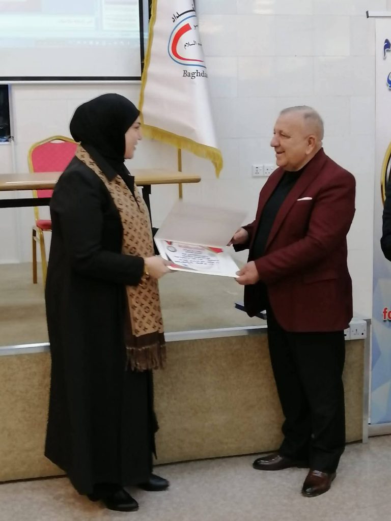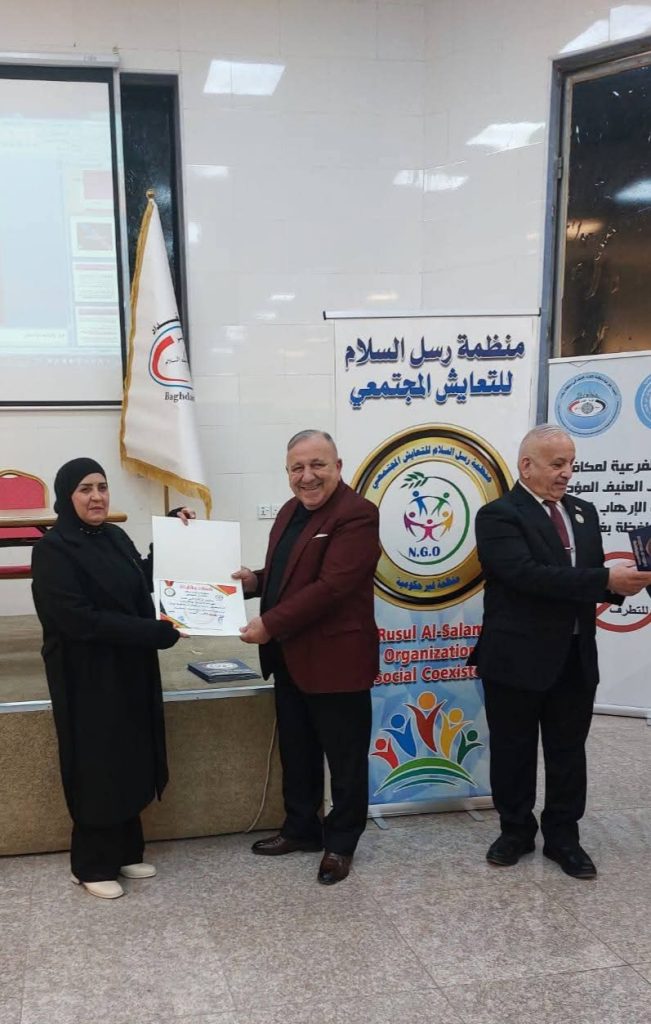 وفي ختام الندوة، قدم الشيخ طالب الزبيدي، رئيس المنظمة درع التميز” للدكتور باسم الخريسان تقديراً لقيمته العلمية وما قدمه من معلومات ثرية. كما تم توزيع شهادات المشاركة على الحضور، مع توجيه شكر خاص لكادر مكتبة المأمون العامة على تعاونهم المميز في إنجاح هذا المحفل.