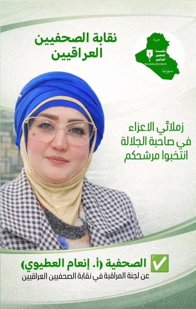 مرشحتكم إنعام العطيوي عن لجنة المراقبة لانتخابات نقابة الصحفيين العراقيين لعام ٢٠٢٦.