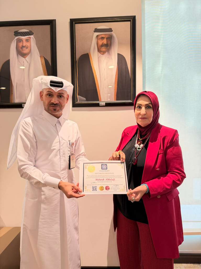 برقية شكر وتقدير / دكتورة سهام البياتي رئيسة الجامعة الامريكية ​إلى سعادة السيد/ حامد بن عاصي القطران الموقر