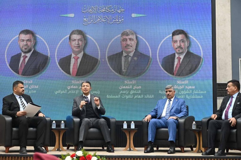 عُقِدَ في بغداد اليوم مؤتمر جهاز مكافحة الارهاب الاعلامي الرابع تحت شعار ( الإعلام المسؤول ودعمه لجهود مكافحة الإرهاب)برعاية معالي رئيس جهازِ مكافحةِ الارهاب الفريق اول الركن كريم التميمي وحضور السادة المحترمون، السيد رئيس شبكة الاعلام العراقي، والسيد المتحدث باسم القائد العام للقوات المسلحة والسيد مستشار الشؤون الاستراتيجية في مستشارية الأمن القومي، والسيد مدير مديرية الاعلام والتوجيه المعنوي في وزارة الدفاع، والسيد مستشار رئيس الوزراء، وطيف واسع من السادة عمداء الكليات واساتذة الجامعات والباحثين والاعلاميين.