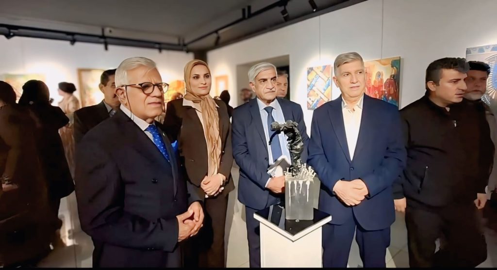 افتتح المعرض صباح يوم الخميس الموافق 12 شباط 2026 بحضور رئيس أمناء مؤسسة جامعة جيهان الدكتور نوزاد، والفنان القدير برهان صابيري، والمستشار الفني المهندس عباس المانع، إضافة إلى رئيس المهرجان الصحفية والناشطة الإعلامية منال العزاوي، التي قادت هذا المشروع الثقافي بروح تؤمن بأن الفن ليس ترفًا بل ضرورة حضارية.