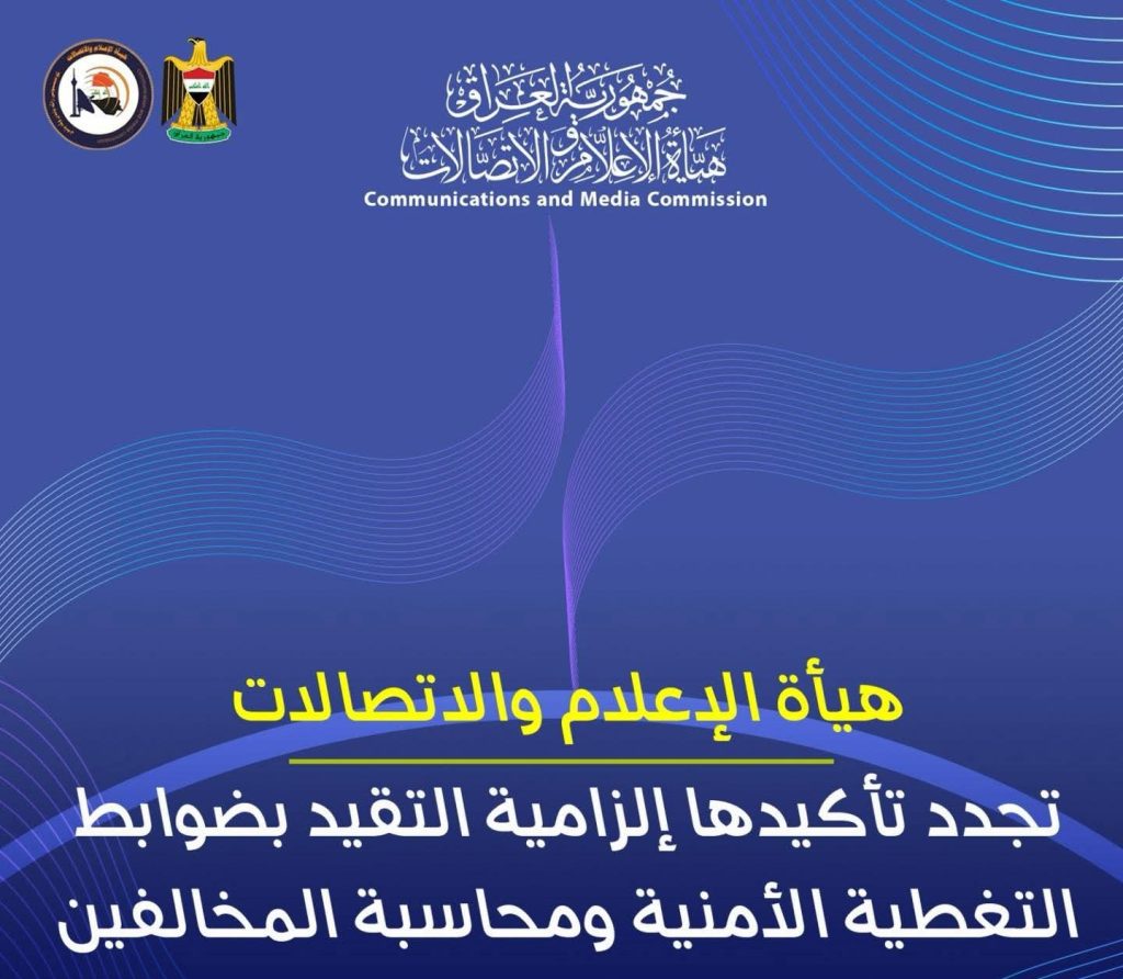 تشدد هيأة الإعلام والاتصالات على ضرورة الالتزام الصارم بمضامين التوجيهات الصادرة عنها بشأن ضبط التغطيات الإعلامية للأحداث الأمنية، في ظل الظرف الأمني الاستثنائي الذي تمر به البلاد، مشددة على إلزامية العمل بالإعمام المرقم (13) الصادر بتاريخ 1 آذار 2026، وقرار الهيأة الصادر بتاريخ 18 آذار 2026.
